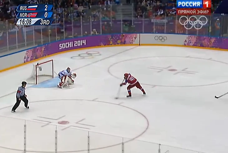 18.34 До конца матча Россия – Норвегия остается всего четыре минуты. Хауген не дает Дацюку забросить третью шайбу. Павел пытался закинуть шайбу в ворота с неудобной руки.
