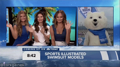 20.46 Пока в женском бобслее все только приближается к кульминации вечера, мы посмотрим на главную олимпийскую гифку последних дней – маскот Сочи-2014 загляделся на девушек из Sports Illustrated.