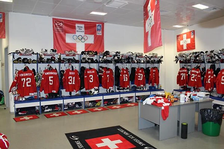 20.50 Через 10 минут начнутся еще два матча в мужском хоккейном турнире – Швейцария во второй раз сыграет с Латвией, а Чехия будет биться со Словакией. Мы не можем не поделиться фотографией из раздевалки швейцарцев.