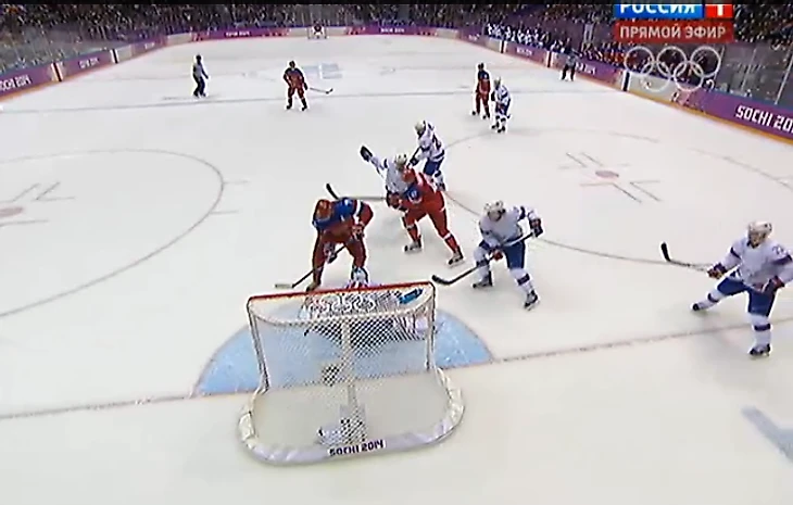 23.14 Три минуты до конца третьего периода в матче Чехия – Словакия. Словаки идут вперед, но чехи массово перекрывают все зоны.