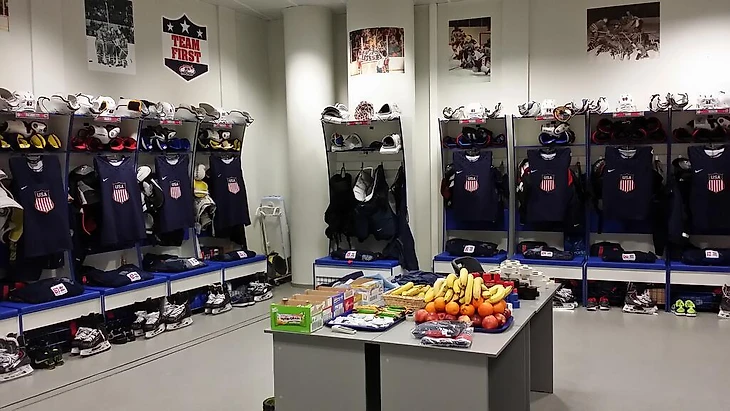 16.04 Ну что же, у нас в соревнованиях пока перерыв. Вечером нас ожидает мужская биатлонная эстафета, первые заезды четверок в бобслее, командные гонки преследования в коньках у мужчин и у женщин, а также хоккейный матч за бронзу. Раздевалка сборной США уже готова к встрече с финнами: фрукты, батончики мюсли, экипировка на месте: