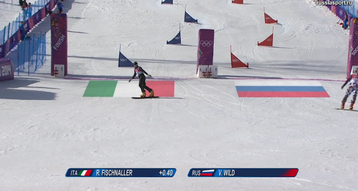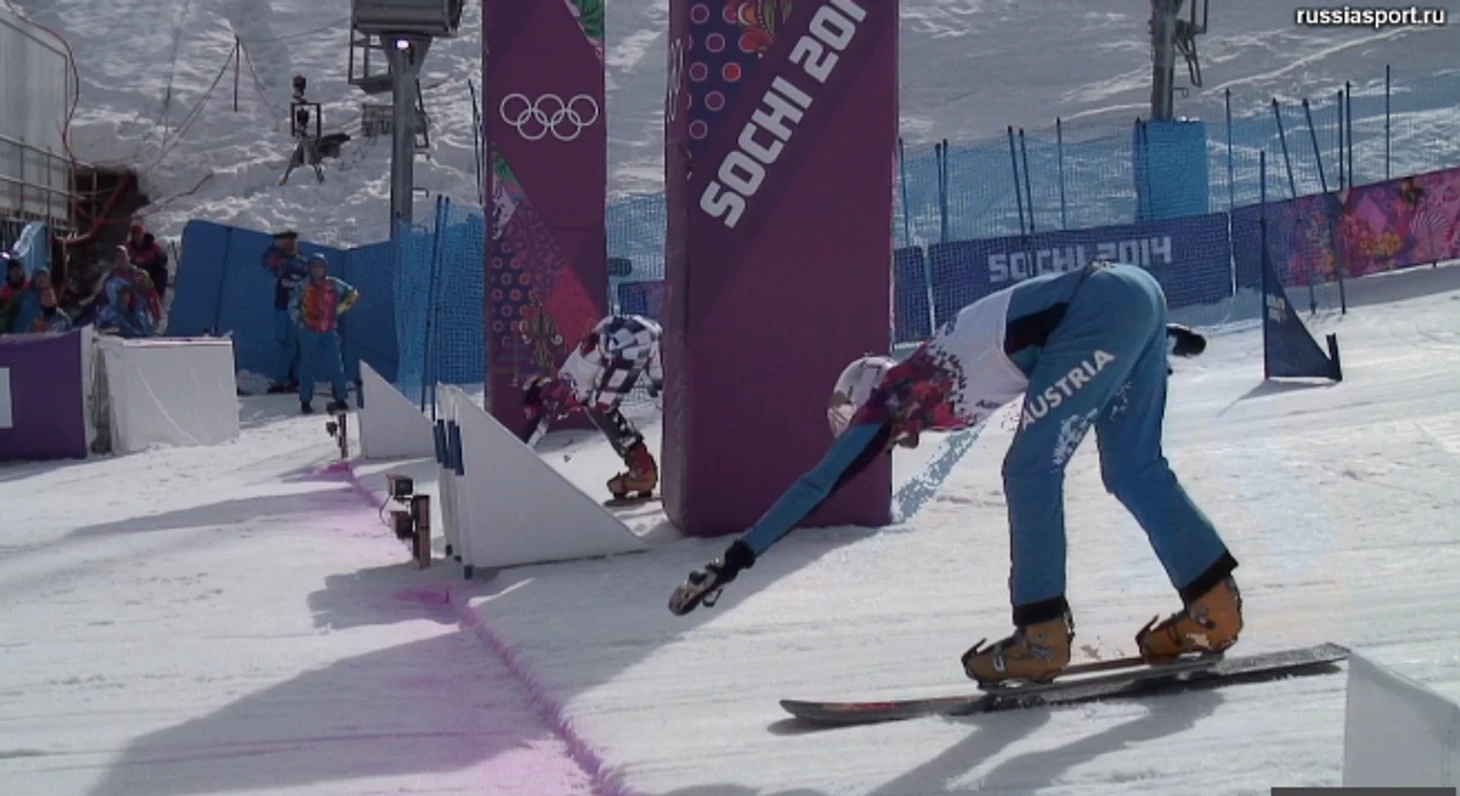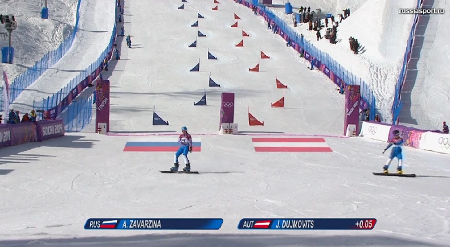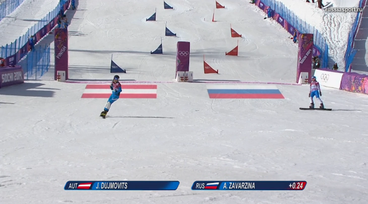 13.19 Алене Заварзиной тоже предстоит соперничать в 1/8 финала с австрийской сноубордисткой. В первой попытке девушки пришло вровень, все решит второй заезд.