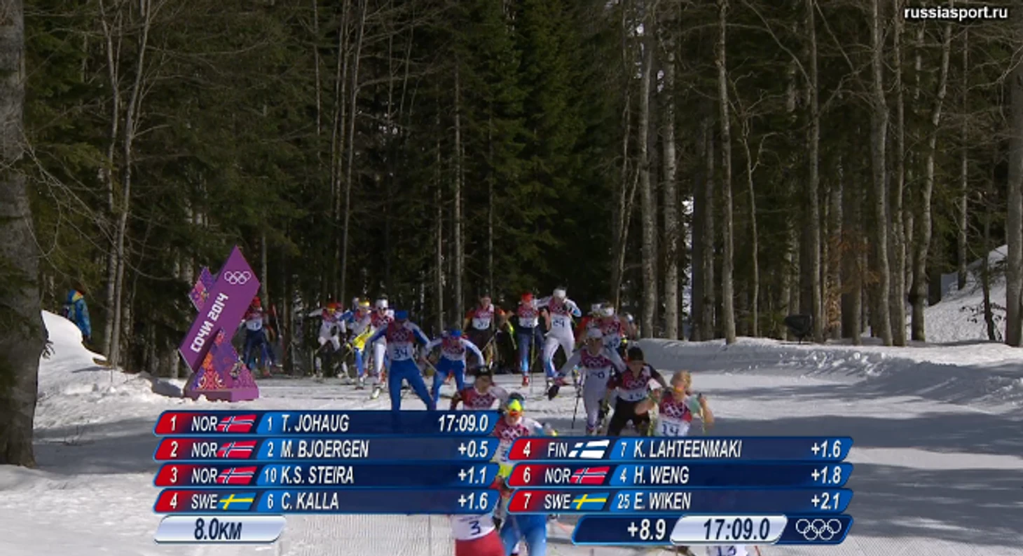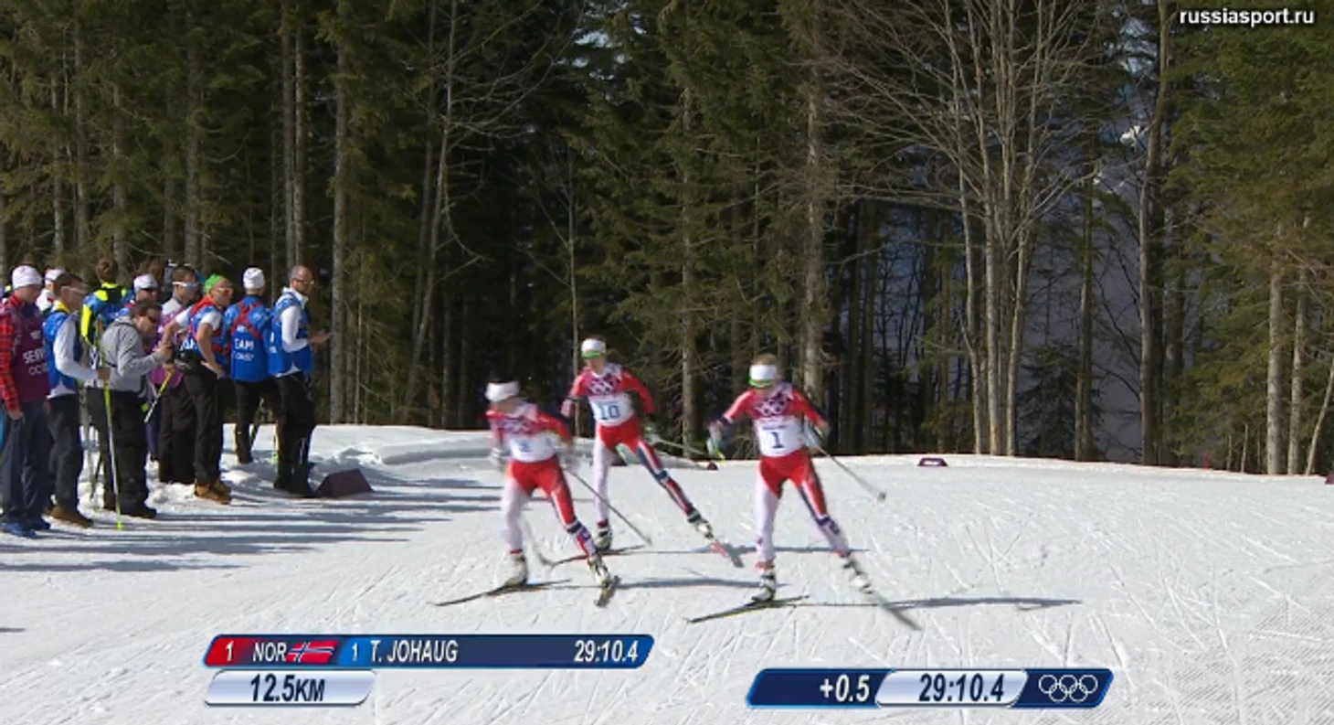 14.29 Абсолютно на каждой отсечке Йохауг, Бьорген и Стейра укладываются в секунду. Одна интрига – в каком порядке они будут на финише?