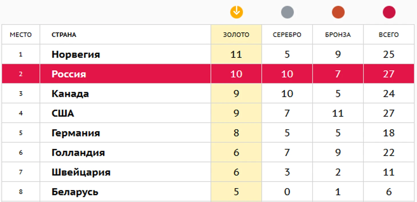 15.55 Самое время проверить, как там поживает медальный зачет Олимпиады. Мы вернулись на второе место по золоту и догоняем США по общему числу медалей: