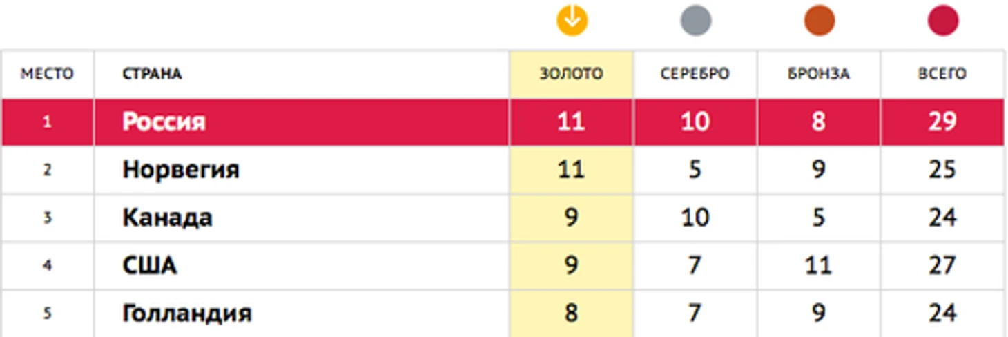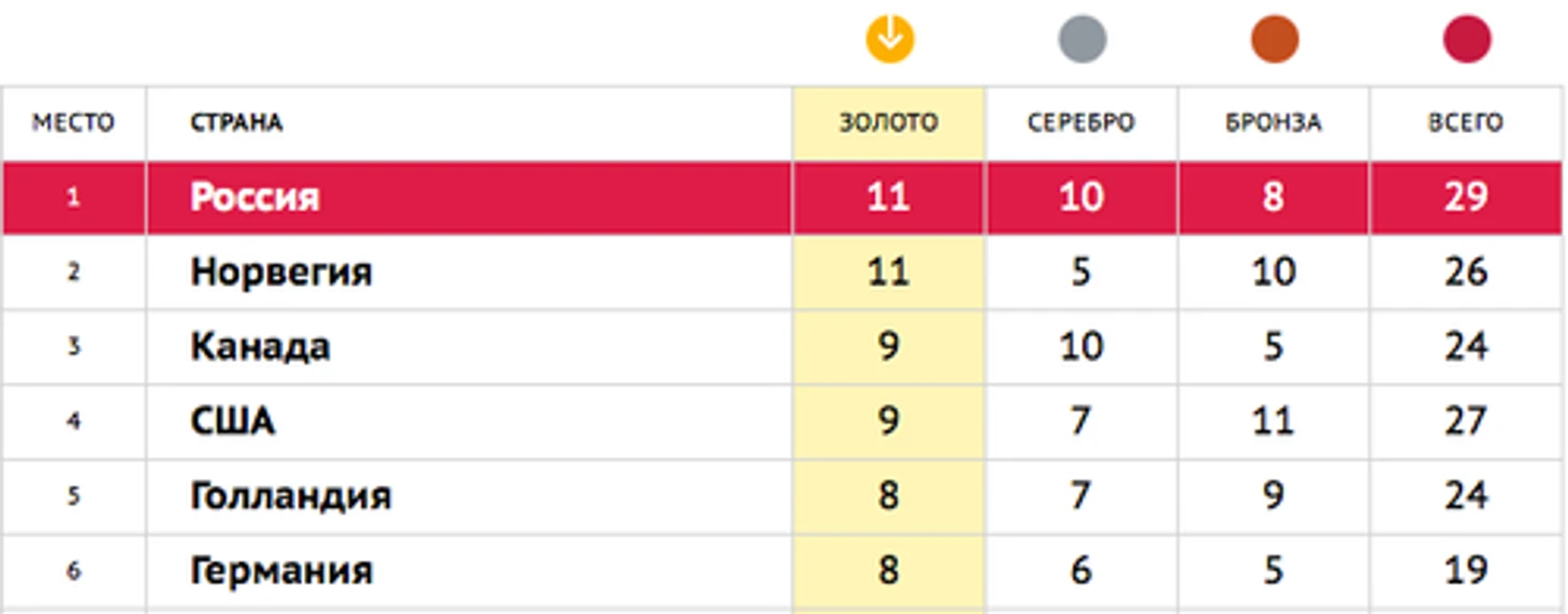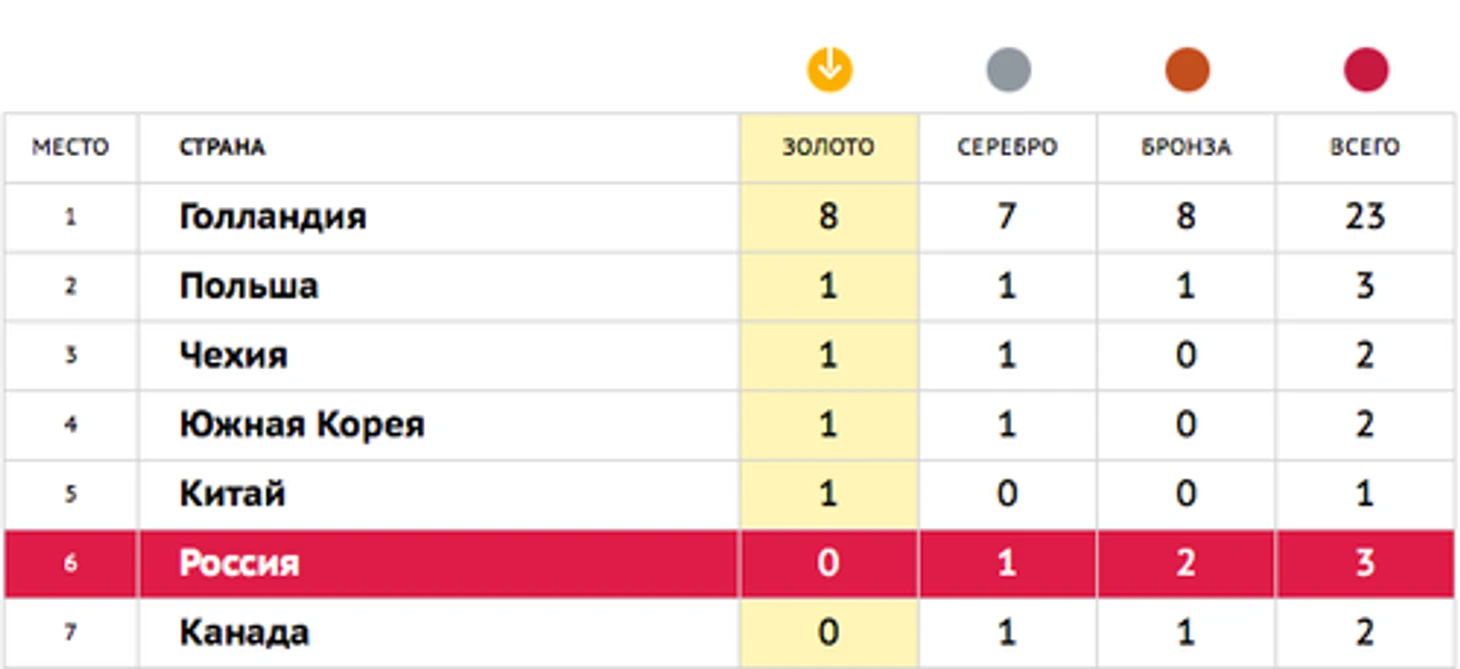Можете полюбоваться таблицей, которая показывает, насколько хороша была сборная Голландии в Сочи. Непредсказуемый вид спорта?