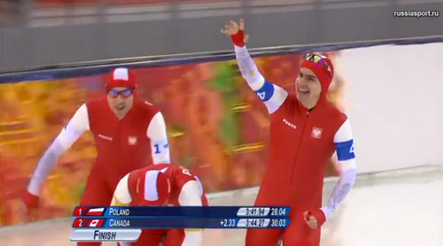 18.57 Тем временем мужская сборная Польши по конькобежному спорту берет бронзу в командной гонке! Канада – четвертая.
