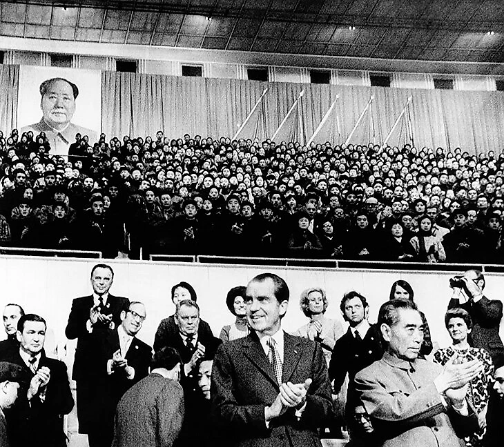 Корейская война, в которую в 1950-м Китай вступил против сил ООН, стала финальным аккордом в отношениях с США на следующие 20 лет – они прошли в тотальной изоляции друг от друга: санкции, дипломатическая тишина, яростная пропаганда, бряцание оружием. Показательная деталь: с 1949-го по 1971-й Китай не принял ни одной официальной делегации из США, а любые переговоры проходили на уровне послов только на нейтральной территории – сначала в Женеве, потом в Варшаве, но ни к чему не приводили.