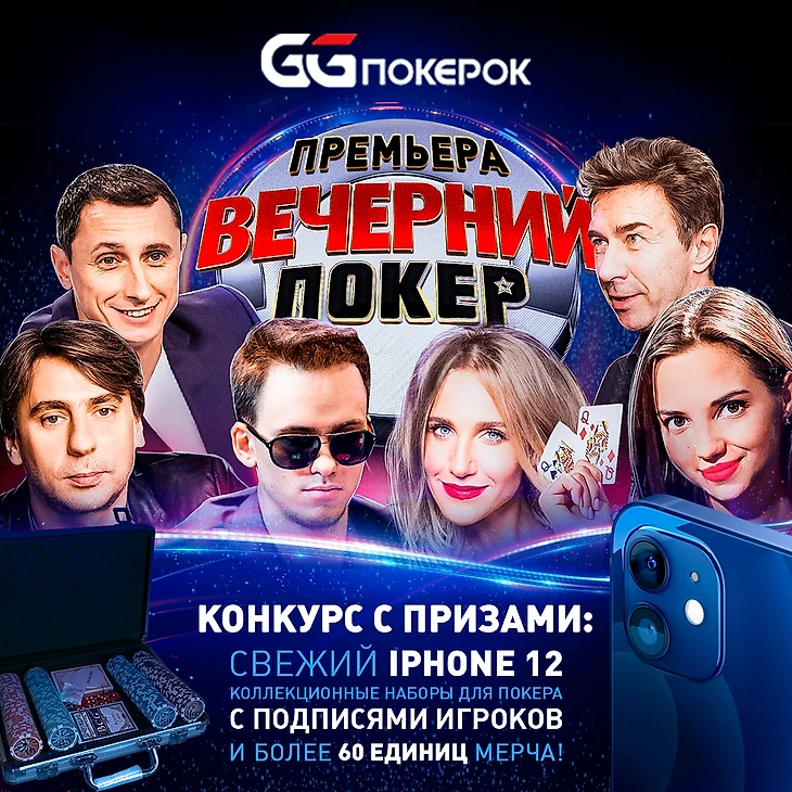 В первом сезоне звёздная пара пoкepиcтoв Trueteller и ScarlettD игpaют с Вадимом Галыгиным, Юлией Ковальчук, Романом Емельяновым и Валерием Сюткиным, с комментариями Михаила Сёмина — ещё одной известной личности в мире пoкepa. Одновременно с премьерой мы запустили конкурс, условия которого до смешного просты: 1️⃣ Подписаться на ютуб-канал Вечерний покер и Instagram проекта 2️⃣ Нажать 🔔 под видео, чтобы не пропустить розыгрыш в прямом эфире 3️⃣ Оставить под актуальным выпуском на ютубе комментарий на следующую тему: “Как произошло моё знакомство с покером, и почему я люблю эту игру” ✌️ Среди призов: 🎁 свежий iPhone 12, 🎁 коллекционные наборы для покера с подписями лучших игроков 🎁 и более 60 единиц мерча! - Победитель будет определен случайным образом из отобранных жюри конкурса комментариев после окончания первого сезона. А сегодня мы с нетерпением ожидаем продолжение первого сезона программы! Не пропустите анонс в нашем блоге! Напоминаем, что играть в покер с живыми людьми лучше всего в покер-руме ПокерОК 🤝 💝 Приятного вам вечера, дамы и господа!