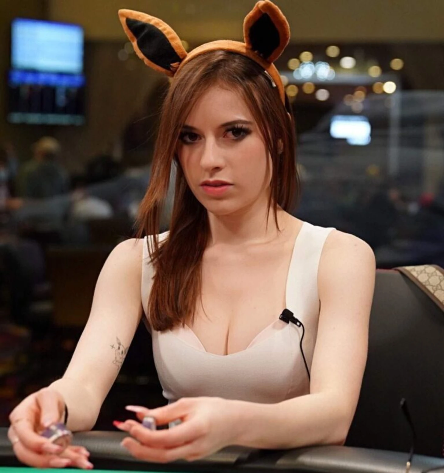 PokerBunny быстро стала популярной во многом благодаря своему откровенному образу – укороченный топ, всегда вызывающее декольте, иногда – заячьи ушки. Как признается покеристка, использование такого образа действительно приносит ей дополнительное +EV – мужчины во что бы то ни стало стараются переиграть ее чуть ли не в каждой раздаче.