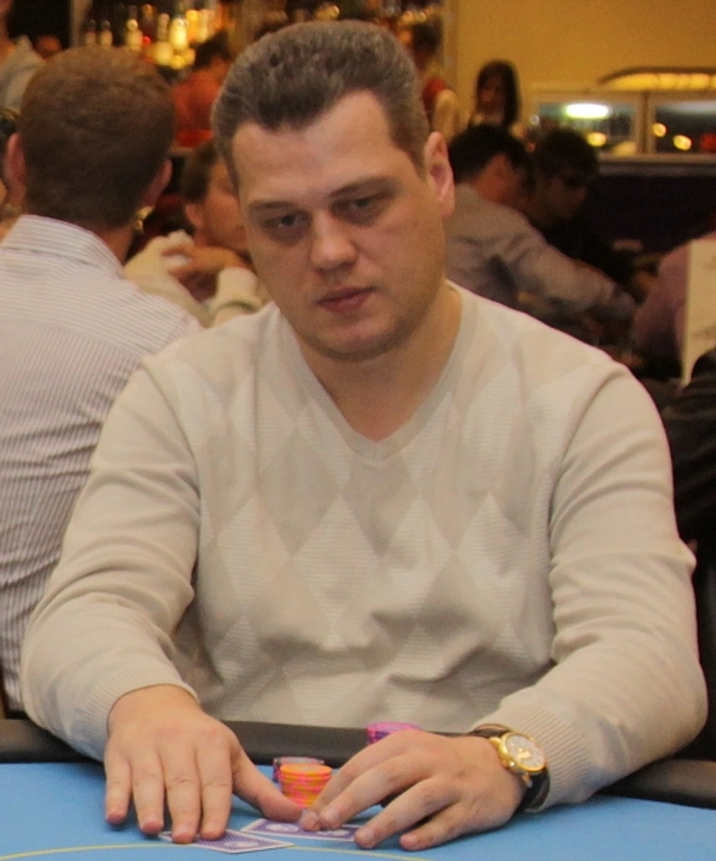 Вообще в первый день для сильных игроков многое зависело от жребия, то есть от того, за какой стол посадят. Например, Сергей Рыбаченко, попав на легкий стол (по его же собственному признанию), почти без сопротивления, словно магнитом вытягивал фишки противников. Нет ничего удивительного в том, что Gipsy закончил первый день одним из лидеров (76 700). Отрыв Рыбаченко от ближайшего преследователя мог быть и большим, если бы за несколько минут до окончания последнего уровня Сергей не «въехал» королями в тузов. На «столе смерти» лучше всего дела складывались у Андрея Заиченко, который по итогам первого дня также входит в группу лидеров (62 500).