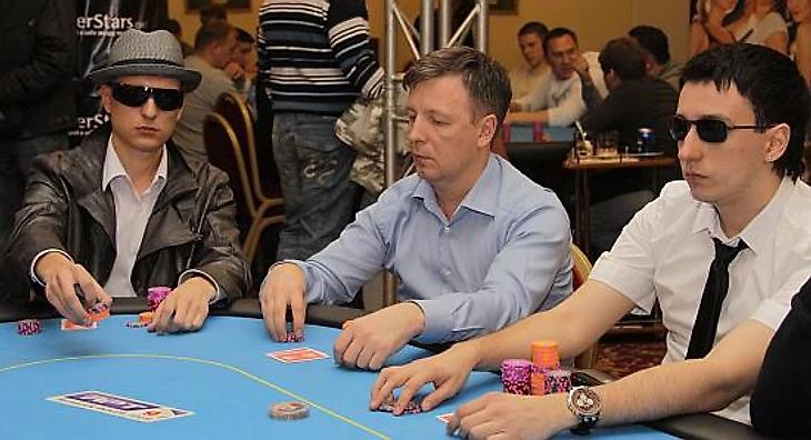 Запредельная концентрация сильнейших российских игроков привела к интересным сочетаниям за столами: Кострицын � Демидов, Кузьмин � Чед Браун (член команды профессионалов PokerStars) � Митропольский, Феклисов � Городецкий � Лыков, Алехин � Волов, Рыбаченко � Пучков. Александр Кравченко и Андрей Заиченко вообще сидели плечом к плечу. Ближе к ночи к ним подсадили еще Александра Кострицына и Максима Шутя. Именно этот стол стал самым плотным по составу.