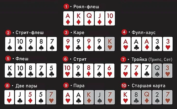 Комбинации в омахе такие же как в техасском холдеме.