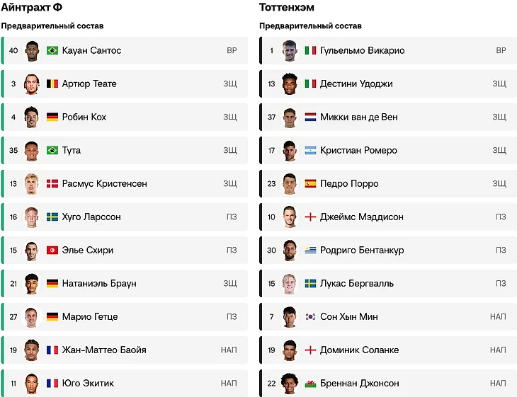 На данный момент матч в Германии – важнейший в сезоне для «шпор» и лично Энджа Постекоглу. Кампанию спасет только победа в Лиге Европы и путевка в Лигу чемпионов. Если Тоттенхэм вылетит от Айнтрахта, Постекоглу могут уволить еще до мая.