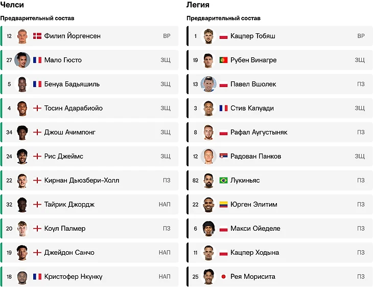 Челси – Легия: прогноз на 17 апреля 2025 года