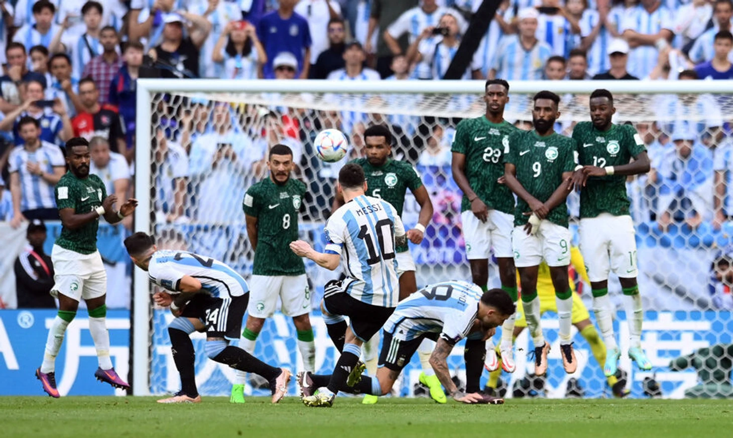 Сборная Аргентины: Херонимо Рульи, Николас Тальяфико, Николас Отаменди, Кристиан Ромеро, Науэль Молина, Алексис Мак Аллистер, Леандро Паредес, Родриго Де Поль, Николас Гонсалес, Хулиан Альварес, Лионель Месси.