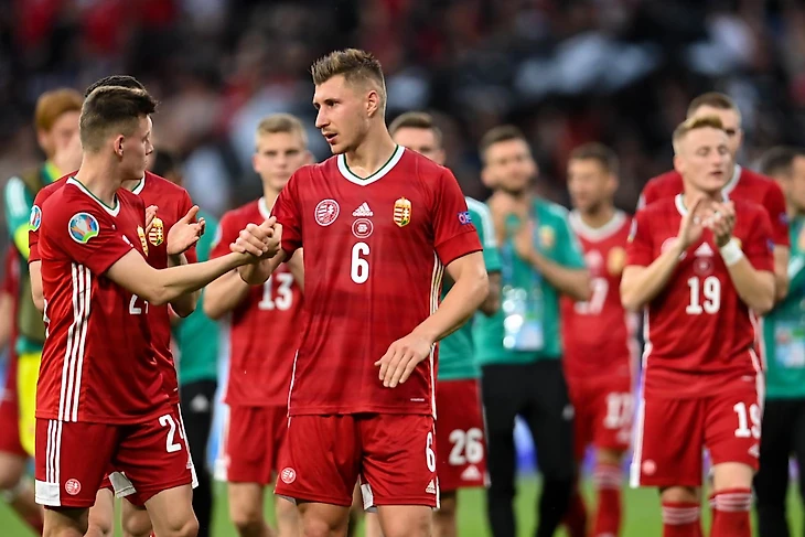 Сборная Венгрии: Балаж Тот, Лоик Него, Вилли Орбан, Аттила Салаи, Милош Керкез, Бендегуз Болла, Каллум Стайлс, Андраш Шафер, Доминик Собослаи, Роланд Шаллаи, Барнабаш Варга.