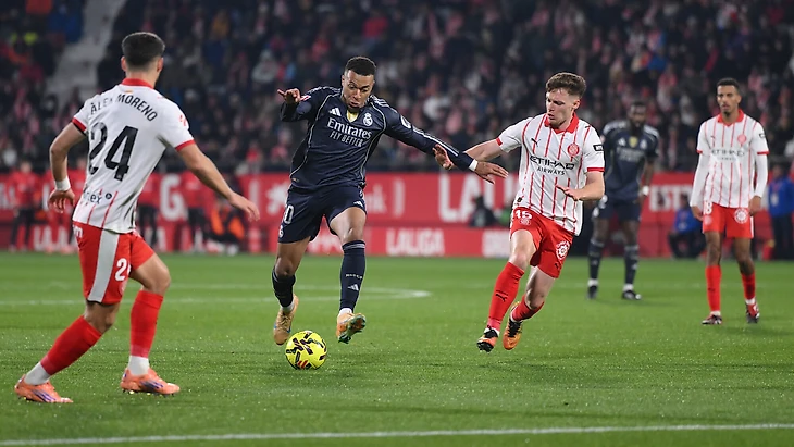 У самого мадридского «Реала» какая-то синусоида в виде чередования ожидаемых побед и неожиданных неудач. После трудной победы над «Олимпиакосом» (4:3) в Лиге чемпионов команда Хави Алонсо умудрилась сыграть вничью с обескровленной и плетущейся в конце «Жироной» (1:1) и пропустила на первое место «Барселону», оставшись на 2-м месте с 33 очками. Килиан Мбаппе с пенальти сравнял счет, ответив на гол в раздевалку Аззедина Унахи.
