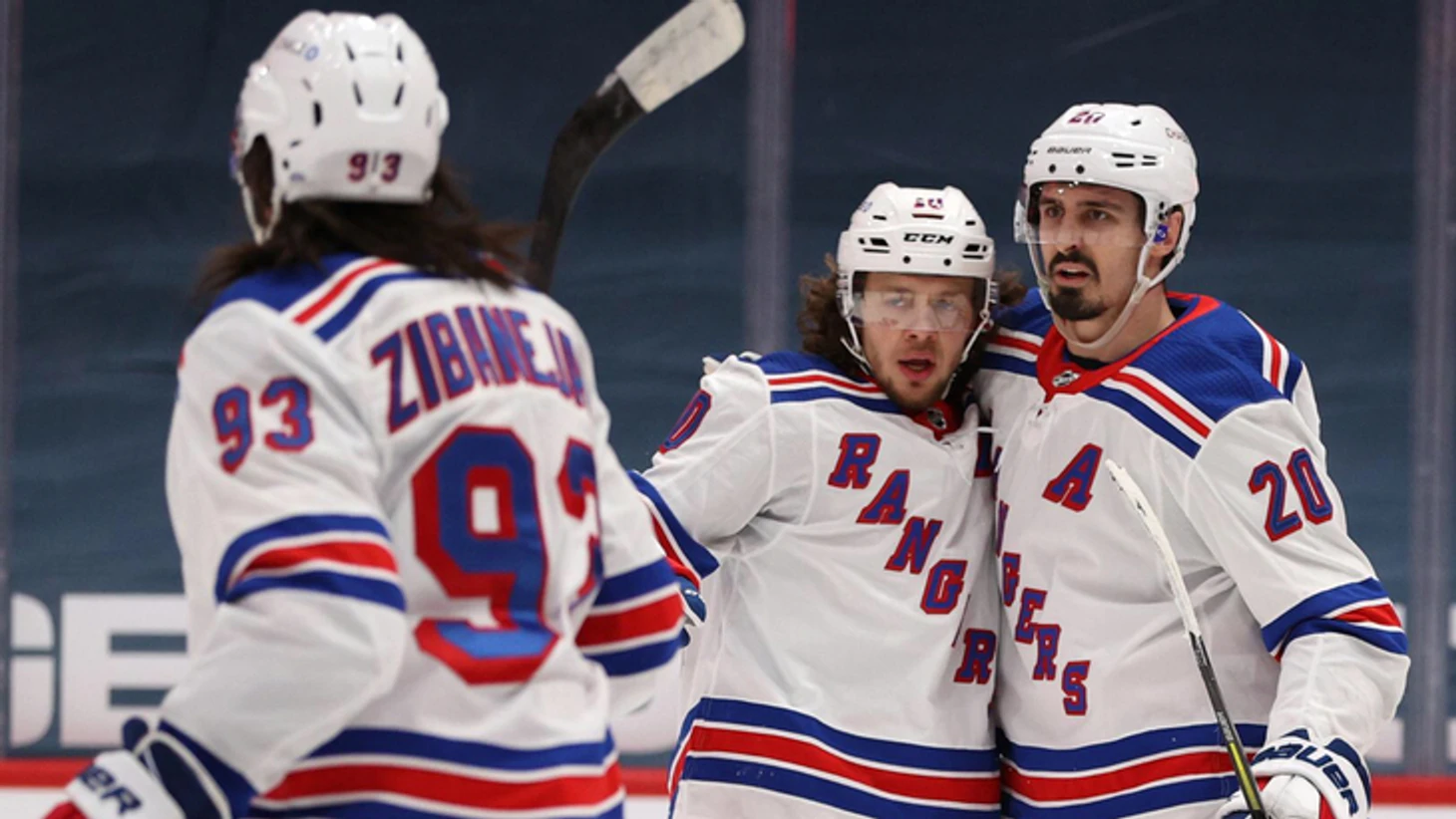 «Нью-Йорк Рейнджерс»: вратари – Игорь Шестеркин, Джонатан Куик; защитники – Адам Фокс, Владислав Гавриков, Уильям Борген, Карсон Сауси, Брэйден Шнайдер, Урхо Вааканайнен; нападающие – Джей Ти Миллер, Мика Зибанежад, Артемий Панарин, Винсент Трошек, Алексис Лафренье, Тэйлор Рэддиш, Сэм Кэррик, Конор Шири, Ноа Лаба, Адам Эдстром, Уильям Кулле, Мэттью Ремпе.