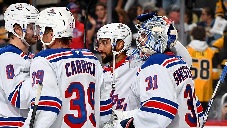 В Питтсбурге мог быть и второй, но голкипер пропустил в ближний угол после броска новичка «Пингвинз» Бенжамина Киндела. Гол вратарский, но в остальном Шестеркин был безупречен. Особенно сложным получился первый период, но «Рейнджерс» забросили первыми, играя в меньшинстве. Мы уже не раз наблюдали перехваты в своей зоне и быстрый отрыв. На этот раз все получилось у Сэма Кэррика и Мики Зибанежада. У шведа первый гол в сезоне.