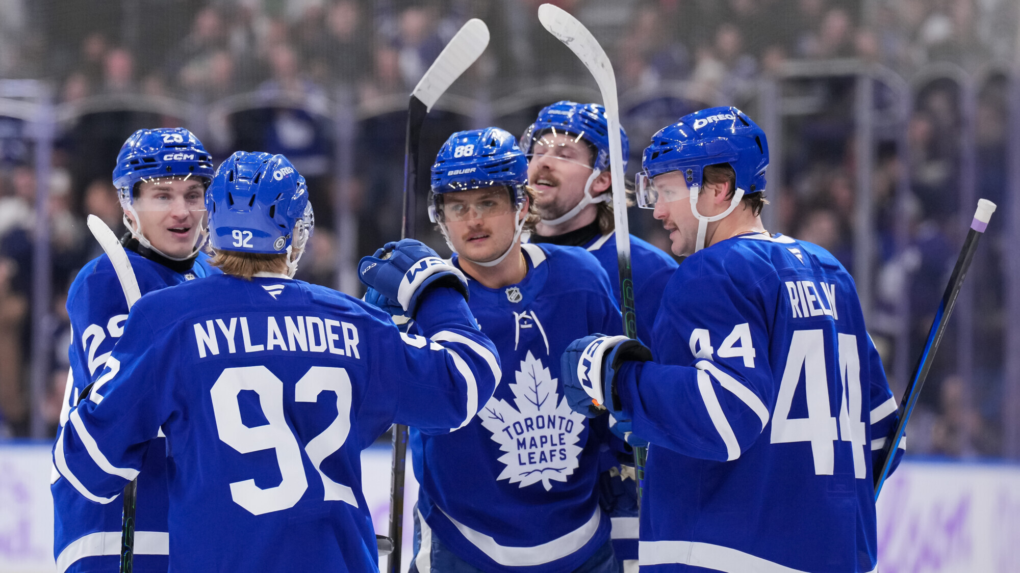 «Торонто»: Илья Самсонов, Джозеф Вул – Морган Райли, Ти Джей Броди, Джейк Маккейб, Саймон Бенуа, Тимоти Лильегрен, Уильям Лаггесон – Астон Мэттьюс, Митч Марнер, Уильям Нюландер, Джон Таварес, Тайлер Бертутци, Калле Янкрок, Ник Робертсон, Макс Доми, Дэвид Кэмпф, Райан Ривз, Ноа Грегор.