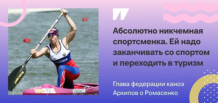 «Абсолютно никчемная спортсменка. Может, если бы у нас не было тяжелой истории отбора, поехала бы другая спортсменка. Ромасенко надо уже заканчивать с большим спортом и переходить в туризм».