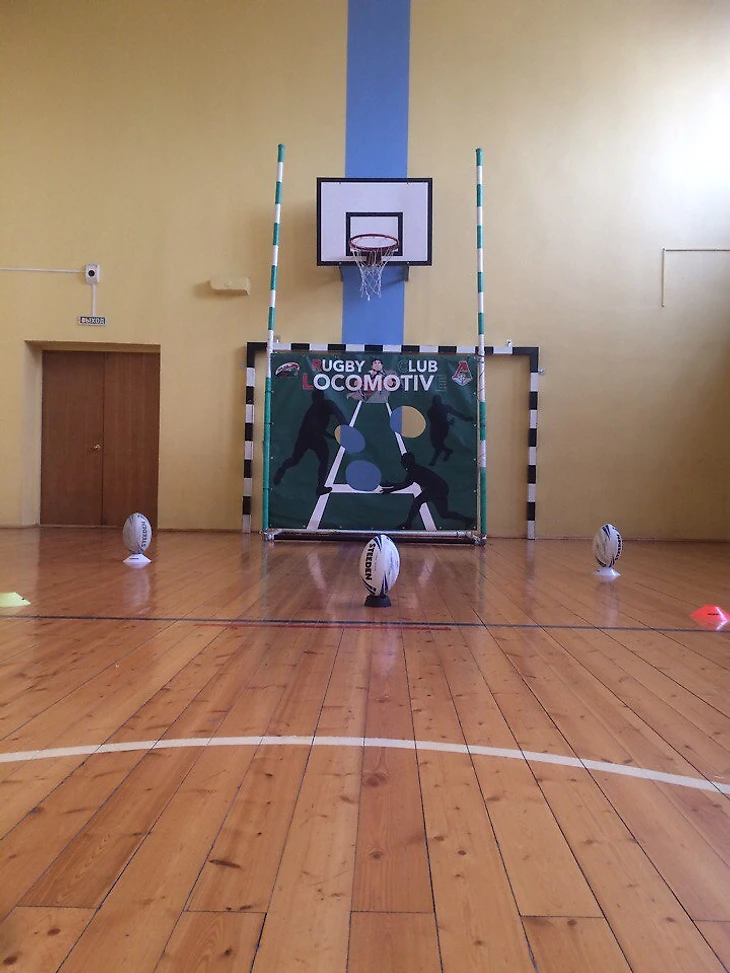 Для ознакомления с игрой мы решили провести урок физкультуры в регби-стиле и, кажется, ученики 5-го класса были приятно удивлены не самыми привычными декорациями их спортивного зала. Приятно, что ещё за несколько минут до начала урока в школьный спортзал стали приходить ребята из других классов, интересоваться тем, что здесь будет происходить, просить ударить по регбийным воротам… Конечно, мы разрешали всем нанести удар по створу ворот, повозиться с овальным мячом, ведь ради этого мы сюда и приехали!