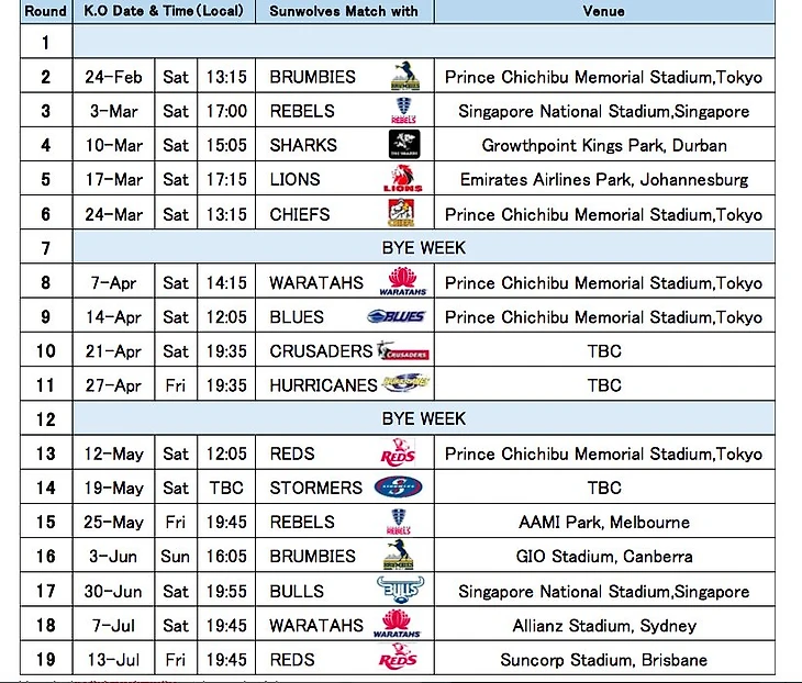 Теперь о расписании на сезон 2018. Путь из 16 матчей начнется для японцев 24 февраля в Токио, во втором раунде турнира. Форматом предусмотрены домашние и выездные игры с каждой из команд своей конференции (8 матчей с австралийцами), и по одной игре с четырьмя представителями из новозеландской и южноафриканской конференций. Пять домашних игр Sunwolves проведут в Токио на Prince Chichibu Memorial Rugby Ground, две – в Сингапуре на National Stadium, место домашней игры со Stormers пока не подтверждено. По расписанию, вполне удобному в этот раз, на этот раунд более логичным видится вариант игры в Токио. Но из-за квоты Сингапура в 3 матча на сезон такое решение требует переговоров. Единственным недостатком расписания является серия из 5(6) заключительных матчей на выезде. Таким образом, в Токио сезон завершится еще в мае, 12(19) числа.