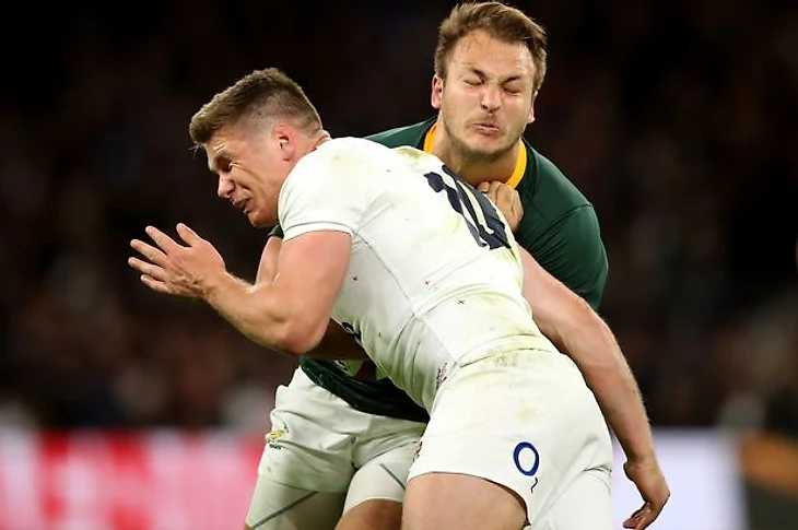 Да, пожалуй, был бы в составе Фаф де Клерк, ЮАР действовала бы намного продуктивнее и острее - ван Зил, хоть и не сплоховавший, исполнял роль подносчика снарядов, то ли не решаясь на инициативные действия, то ли просто не имея к тому достаточных навыков. Неудивительно, что тренерский штаб ЮАР в итоге уговорил Сэйл Шаркс отпустить игрока на оставшиеся тесты, хотя до этого клуб сообщал, что договоренность была только на Чемпионшип. И все же Спрингбокс могли украсть победу, если бы не спорное решение Гарднера не наказывать Оуэна Фэррелла за то, что со всех повторов мне (и не только мне) казалось опасной атакой плечом. Рефери все же рассмотрел в контакте попытку флай-хава захватить одной рукой Эстерхойзена и не стал фиксировать нарушение (хотя многие фанаты даже уподобили действия Фэррелла дикарству Сонни Билла Уильямса в игре против Львов). Наверняка Фэррелл не замышлял ничего противоправного, но на мой скромный взгляд, он допустил ошибку, и Англия должна была за нее поплатиться штрафным и возможностью Полларда после сирены пробить победный удар. Увы, Бокс не сумели повторить свой успех летней домашней серии и вынуждены мириться с поражением.