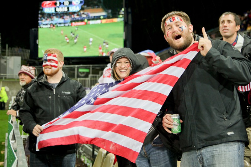 Игра была вялая, русскоязычную диаспору из-за нелюбви к ядерной державе Нового света поддерживали местные жители. Они по привычке вырядились в подходящие к случаю костюмы. В ход пошли кушаки, кокошники, кокарды, шапки-ушанки, медведи и прочая около-русская мишура. Очень задорно и весело, чего уж там.