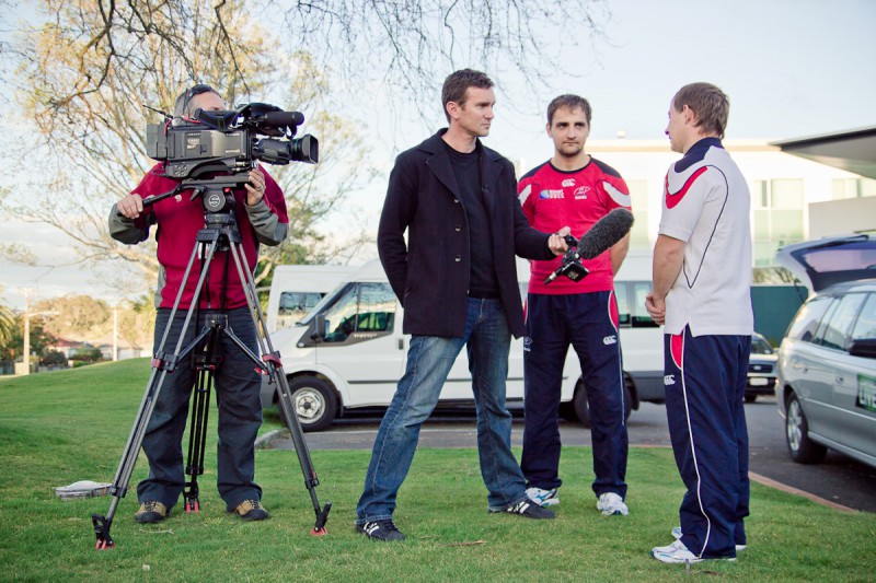 Хотя в сорокатысячном Роторуа всё недалеко. В свете закатного солнца репортёр местного телевидения через переводчика (собственно, пресс-атташе) общался с самым, пожалуй, популярным игроком российской команды, отличающегося отчаянной игрой и небольшим ростом Александром Янюшкиным (28 лет, рост 165см, вес 75кг). Можно заметить, как для сохранения вертикалей в кадре — чтобы головы были на одном уровне — интервьюирующий встал, раздвинув широко ноги. Оператор косился на случайного фотографа, выказывая неодобрение, хоть я в кадр и не лез вовсе.