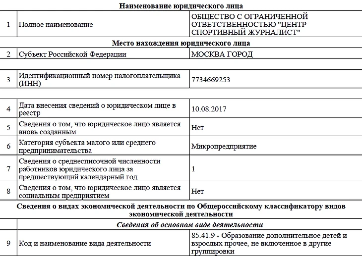Осуществляет свою деятельность ООО «Центр спортивный журналист», с извлечением соответствующего дохода, по адресу: г.Москва, ул. Красина д.27, стр.2, в помещении газеты Спорт-Экспресс. Так получается, что главред газеты Максим Максимов, вместе со своим заместителем – Дмитрием Симоновым, предоставляют нашему ООО помещение, вероятно по договору аренды (как я надеюсь, хотя бы видимость законности соблюдается) и ещё, при этом, подрабатывают у арендатора – прелестно.