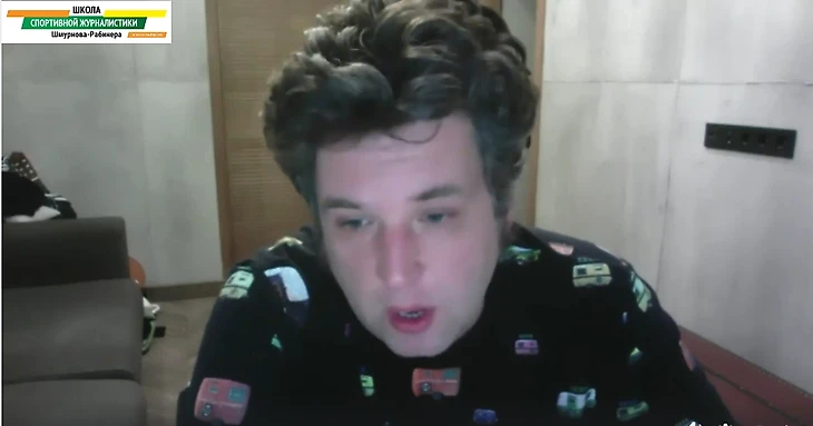 (Ещё один либерал, по крайней мере по месту службы. Евгений Баламутенко работает на ТВ канале "Дождь". Этот постоянно поет оды Рабинеру и кажется, что Игорь Яковлевич его для этих целей и пригласил. Ещё говорит, что знает кто сколько получает в спортивной журналистике, поделится этим со слушателями школы и те профессионально вырастут, в связи с этим. Ну-ну)