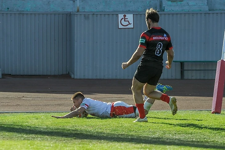 Получилось красиво: после розыгрыша чужой схватки на своей половине поля Дмитрий Сухин ногой отправил мяч в сторону зачетного поля соперников и сам устремился вслед за ним. Убежать не удалось, зато получилось отдать пас Андрею Карзанову, который положил первую попытку. Сергей Янюшкин ювелирно выполнил реализацию с края – 7:0. Впрочем, ещё до перерыва равновесие было восстановлено: атаку «ВВА» завершил приземлением мяча по центру ворот стремительный Герман Давыдов, а Герману Годлюку не составило труда добавить два очка. Так что во втором тайме все пришлось начинать заново.