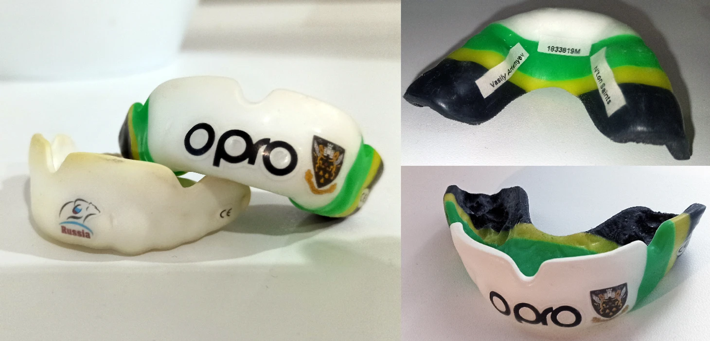 Впоследствии я сменил еще несколько термоформовочных кап разных производителей, пока наконец не сделал свою первую индивидуальную капу на заказ в возрасте 22-х лет в Москве у стоматолога Староверова Юрия Васильевича, который является настоящим профессионалом и мастером своего дела и более 15 лет изготавливает индивидуальные капы для профессиональных спортсменов в России.