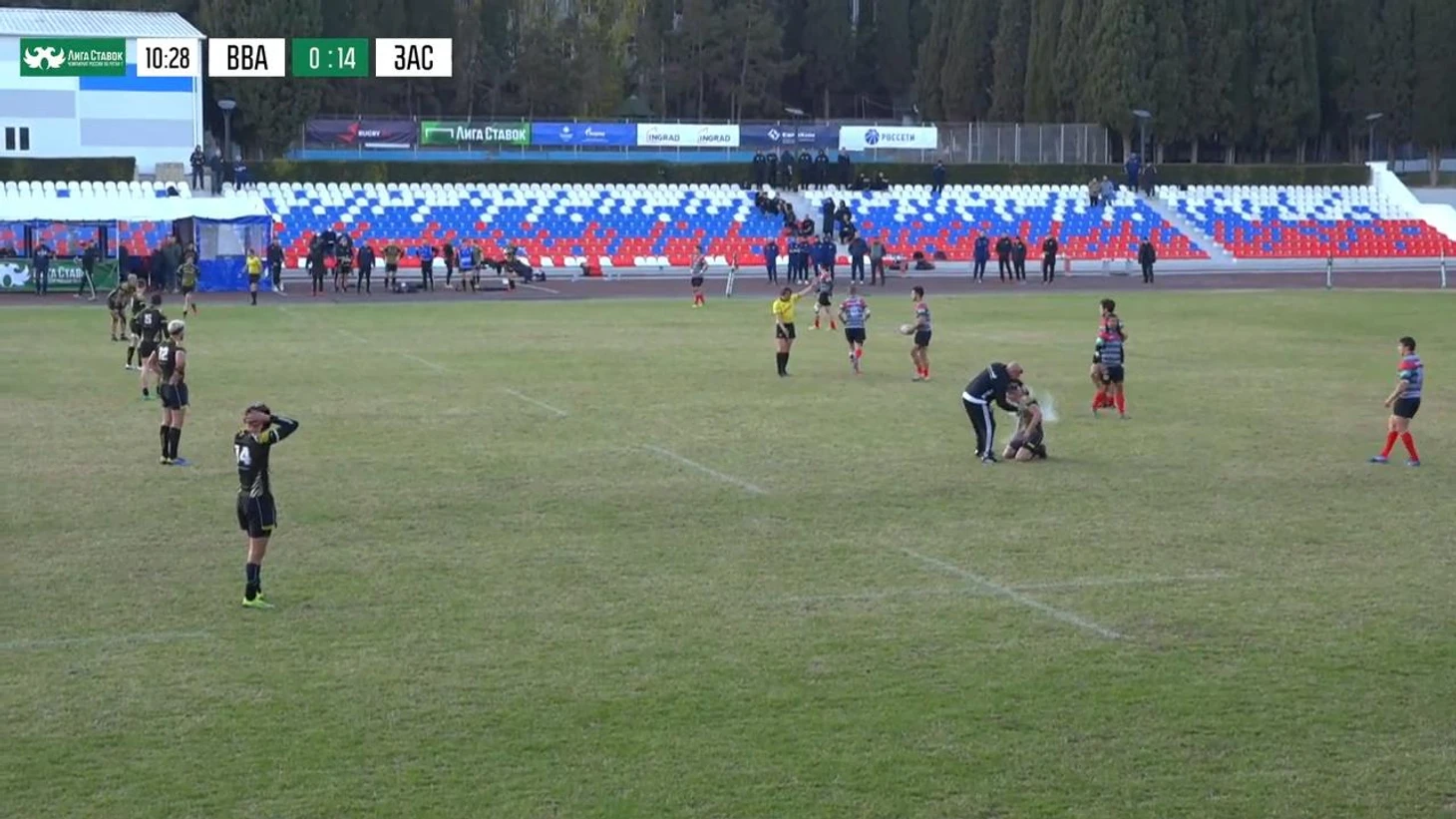 Четвертая минута второй половины. 0-14. Только что "Застава" удвоила свое преимущество. Завладев мячом после начального, "военлеты" спешат отыграться, раз за разом врезаясь в оборонительную линию соперников. В одном из моментов один из игроков Санкт-Петербурга допускает высокий захват. "В аут! В аут!" - кричат с бровки. Хорошая возможность для "ВВА" перенести игру поближе к зачетке "Заставы", ведь глубоких прорывов защиты в открытой игре у монинцев в финале не получалось.