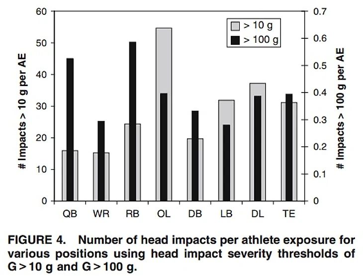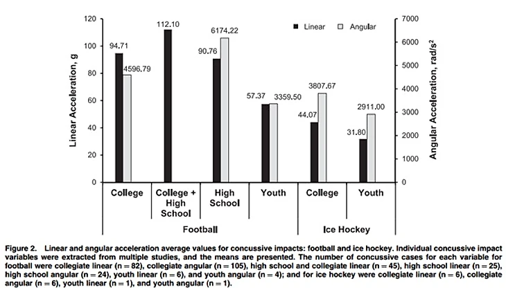Как бы не хотелось иметь одну единственную величину, порог, превышение которого указывал бы на полученное сотрясение, все применяемые критерии – величины вероятностные. Причем влияет не только место удара, но и физиологические особенности конкретного спортсмена. На PubMed или Researchgate можно найти ряд публикаций с красивыми цифрами, графиками и статистикой. Со статистикой и чтением графиков у меня не очень, поэтому я укажу пару значений, приведу пару картинок и дам ссылку на источники.