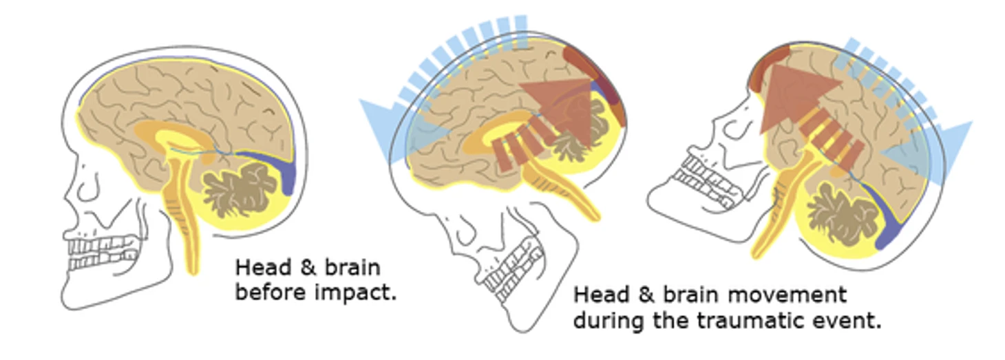 В общем случае, при ударе череп начинает движение с неким ускорением, а мозг в силу инерции немного отстает. Наиболее распространенные иллюстрации указывают внешнюю поверхность мозга, как наиболее уязвимую. Красные участки заставляют нас думать, что именно в местах столкновения мозга с черепом происходят наибольшие разрушения. На самом деле свободного пространства в черепной коробке не так уж и много, а мозг не скачет там как мячик. Поэтому современные исследователи склоняются к тому, что причины сотрясений — сильные деформации именно во внутренних тканях головного мозга. Об этом есть в выступлении Камарильо.
