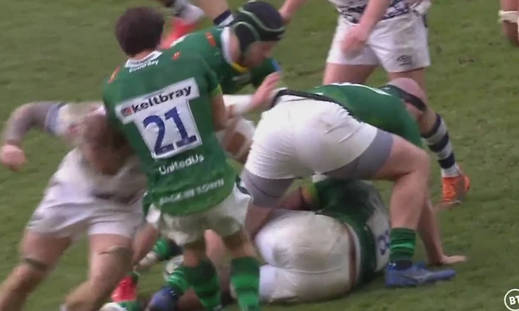 В этом матче карточки тоже были показаны, как и во всех других. Удивительно, что обошлось без красных. Возможно Карл Диксон решил на 2-й минуте не желтить так и ограничился жёлтой карточкой Сэму Бедлоу (12 номер) из Бристоля за то, что тот сделал лайтовую версию огнетушителя Тео Брофи-Клюсу (12 номер). И дальше команды не жестили с нарушениями. Итак, пока Бедлоу отдыхал 10 минут за жёлтую карточку, команды набрали 20 очков. 2 штрафных, 2 попытки и 2 реализации. Счёт открыли хозяева после штрафного, назначенного за нарушение Бедлоу. Пэдди Джэксон (10 номер) уверенно пробил и принёс первые 3 очка своей команде. Лондон Айриш собрались реализовать численное преимущество и готовились заносить попытки. Однако произошло следующее. После розыгрыша схватки, Лондон Айриш слева направо переводили атаку, но Джэймс Стукс (15 номер) попал под захват и выпустил мяч. Его подхватил Чарльз Пиутау (15 номер) и промчался метров 70 прежде чем его догнал Олли Хасселл-Коллинс (11 номер) и попытался повалить на газон, и все бы хорошо, но Пиутау скинул мяч Энди Урену (9 номер), который быстро передал мяч Пирсу О’Коннору (13 номер), который и принёс первые 5 очков для своей команды. Через пару минут уже Рату Наулаго (11 номер) перехватил пас от Блэйра Коуэна (7 номер) и пробежал около 90 метров никем не остановленный. А Каллум Шиди (10 номер) забил две реализации. А потом и штрафной. И сделал счёт 17-3 в пользу гостей, после чего Бедлоу и вернулся на поле и игра была без результативных действий около 10 минут. Пэдди Джэксон забил ещё один штрафной. А в последнюю десятиминутку Стивен Вуи (5 номер) завалился между штанг с мячом. А через 2 минуты случился ещё один феноменальный проход от Бристольцев. Пэдди Джэксон не видя нормального развития атаки решил сделать пас на ход Бэну Лоадеру (14 номер). Но так как он был слишком далеко и не успевал к мячу, то мяч подхватил Чарльз Пиутау, при этом усадив Лоадера на попец. Пробежав сдесяток метров, он не глядя отдал пас Наулаго, который пробежав до середины поля вернул его Пиутау. Пиутау на скорости промчался ещё метров 40 и отдал чёткий пас Наулаго, который занёс свою вторую попытку в матче и которая оказалась четвёртой для Бристоль Бирз и добавила бонусное очко в таблицу чемпионата. Шиди забил ещё две реализации. И вбил гвоздь в крышку надежд Лондонцев на успешный матч. На лицах игроков Бристоля не сходили улыбки. Поверили в победу задолго до конца матча. Но игроки Лондон Айриш атаковали весь тайм, давили на оборону и всё-таки пробили брешь в оборонительных редутах гостей. Стив Мафи (4 номер) продавил Янна Томаса (1 номер) и пробежав 22 метра принёс первую попытку для своей команды. Пэдди Джэксон забил реализацию, установив счёт по итогам тайма 13-31.