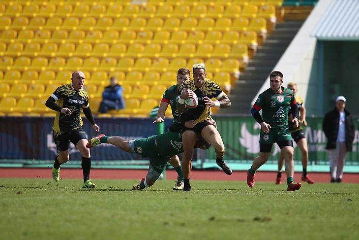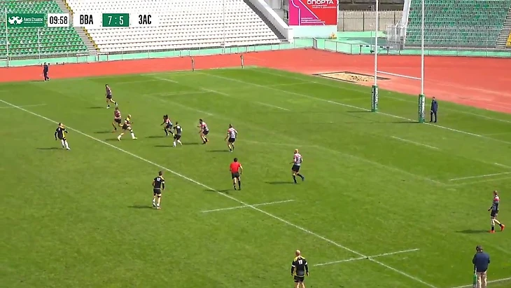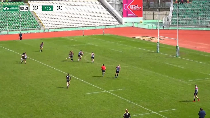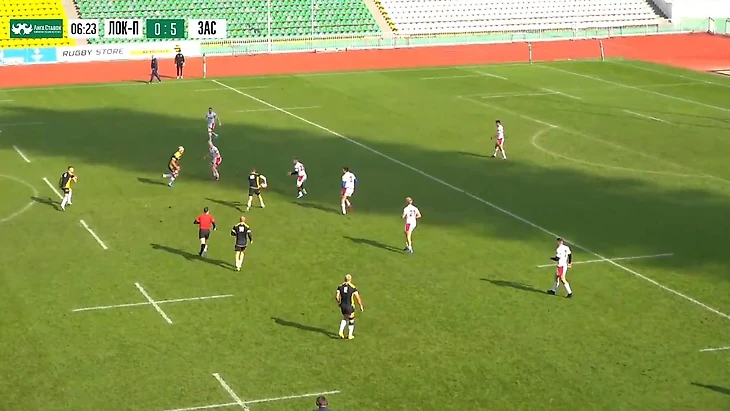 Словно торнадо врывается "Застава" в линию защиты - ни переждать, ни отсидеться сопернику, как в прошлогодних турах. Порывистый ветер атаки разметывает оборону в разные стороны, Иван Овчинников кладет попытку по центру. А Дмитрий Сухин("Локомотив" №22), бывший партнер Ивана по "Красному яру", игрок хорошо понимающий семерку, на протяжении всего эпизода гоняется за мячом, всякий раз находится рядом, но ничего поделать не может. Форс-мажор, от стихии спасения нет.
