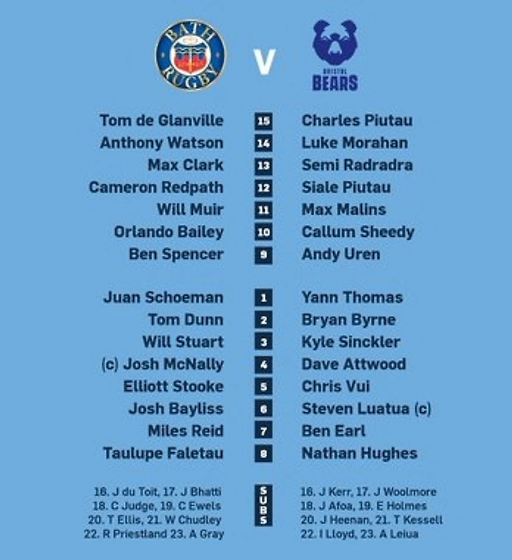 Том Эллис проведёт сотый матч за Бат, а также ожидается возвращение на поле Риса Пристланда со скамейки запасных.