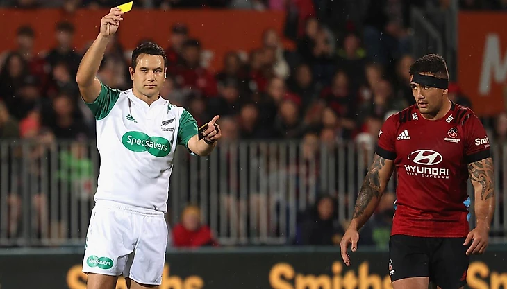 Ключевой отрезок финала выпал на пятнадцатиминутку, последовавшую за удалением в син бин Коди Тэйлора, принявшего взлетавшего в воздух Дамиана МакКинзи. Для хукера Крусейдерс, проводившего не самый впечатляющий матч, явно напрашивалась красная, но Пикерилл извернулся и оправдал желтую тем, что ДиМэк приземлился безопасно, значит, нарушение Тэйлора было не таким страшным. МакКинзи, впрочем, зла на Красных не держал и в третий раз смазал штрафной. Хозяевам удалось отодвинуть игру подальше, но ошибка Хавили при позиционно выносе мяча стоила значительной потери территории - Сейдерс снова оказались под натиском Чифс. Ситуацию усугубил Севу Рис, слишком высоко махнувший рукой по лицу Чейза Тиатиа - Крусейдерс потеряли еще одного человека (и на 5 минут остались в двойном меньшинстве), а МакКинзи, наконец, был точен, сделав счет угрожающим.