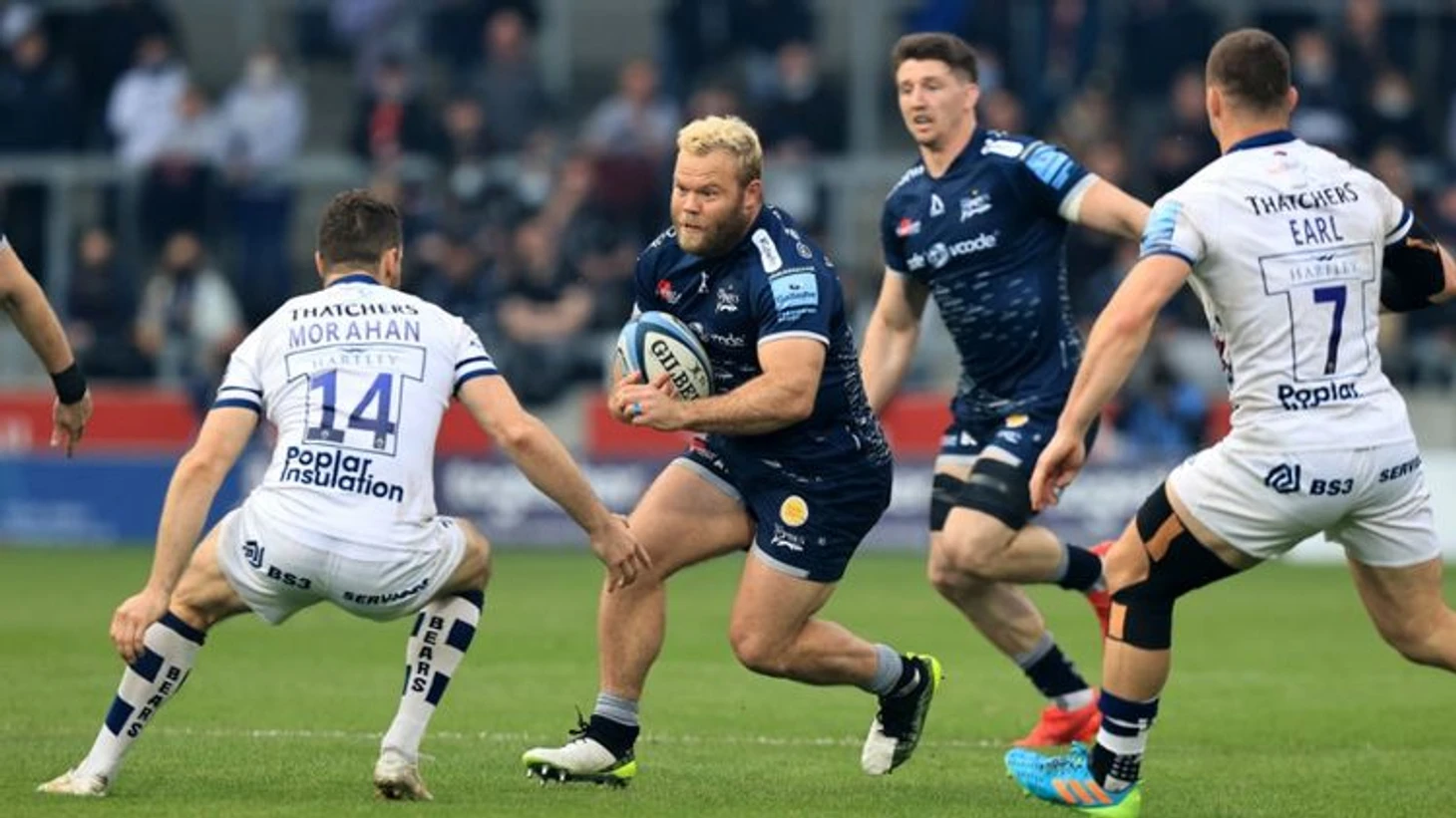 Вот и подобрались к шестому матчу обзора. На самом деле это был первый матч тура, который я поглядел. Встречались команды разной игровой концепции. Бристоль Бирз очень активно действует веером, а вот Сэйл Шаркс отлично защищаются против любых атакующих действий соперника, будь то атака через центр или после стандартных положений. Как и в предыдущих матчах обзора, первая попытка свершилась к пятой-шестой минуте матча. Только вот есть существенное отличие от других матчей, на пятой минуте второго тайма. В первом тайме команды вообще не набрали очков. Да, вообще, совсем и многие другие слова, которые могут подойти по смыслу. Команды закончили первый тайм по нулям. Но была ли игра скучной и не интересной? Конечно нет. Игра была очень захватывающей и смотрелась на одном дыхании. Сэйл Шаркс терпели и грамотно защищались, но все равно пропустили первыми. Бэн Ирл (7 номер) завершил приземлением мяча в зачётку хозяев. Каллум Шиди (10 номер) был не точен при пробитии реализации. В дальше случилось то, что перевернуло матч и позволило Сэйл Шаркс добавить ещё больше в такой игре. Сами Рандрадра (13 номер) получил жёлтую карточку, хотя мог и красную схлопотать за два горчичника в одной атаке.