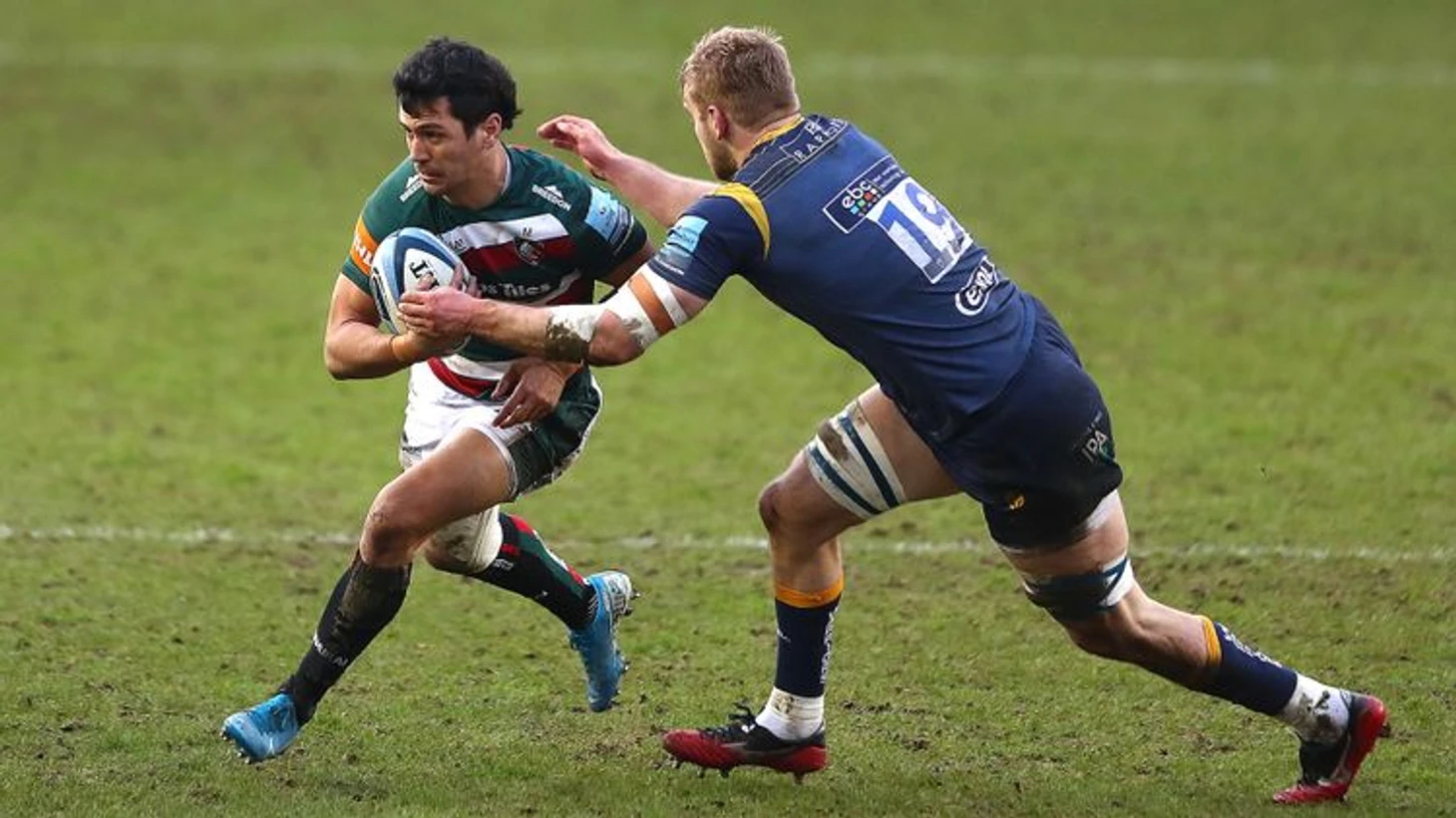 Удивительный матч для Вустер Уорриорз. Команда, как известно не может победить после первого тура в турнире, я не беру в расчёт победы, которые присудили команде в отменённых матчах. А сейчас, на минуточку двадцатый тур завершился. И этот матч мог прервать длительную серию без побед. Регбисты Вустера очень хотели победить, и разумеется были близки к этому. В первом тайме сделали определенный задел даже. Две попытки в исполнении Джэйми Шилкока (15 номер) и капитана Вустера Тэда Хилла (6 номер) в начале и конце тайма принесли 10 очков для команды. А Джейми Шилкок добавил ещё 4 после того, как забил обе реализации. Однако регбисты Лестера смогли тоже набрать очки в первом тайме, воспользовавшись тем, что регбисты Вустер Уорриорз часто нарушали правила. То в схватке нарушат правила, то не откатятся после захвата, то вообще врежутся друг в друга при попытке ловли мяча, как в случае с Перри Хамприса (14 номер) и Олли Лоуренсом (13 номер). Зак Хенри (15 номер) забил два штрафных из трёх. А забей он три штрафных, то команда даже могла бы лидировать в середине первого тайма. Но этого не случилось и Вустер почти весь первый тайм лидировал в счете. Ещё очень удивительно, что в первом тайме не удалили Немани Надоло (11 номер) за слишком агрессивную игру в захватах. И в итоге первая половина матча завершилась со счетом 14-6.