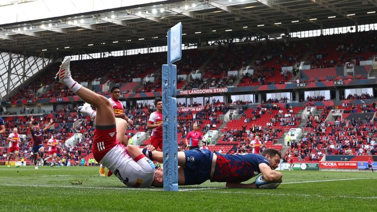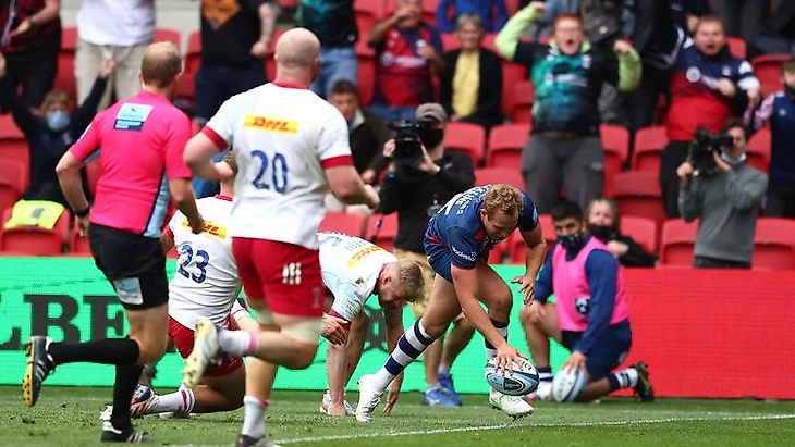 В данном обзоре будет всего два матча, но зато какие. Это противостояния за выход в финал. Два великолепных матча между лучшими командами по итогам гладкого турнира Премьершипа. В первом матче, о котором я вам расскажу, встречались команды, которые заняли первое и четвёртое места по итогам 22-х игр. Бристоль Бирз заняли первое место, а Арлекинс четвёртое. И матч выдался просто сумасшедшим. 36-43(28-5, 3-26, 5-12 д.в.) счёт этого матча, а в чью пользу, узнаете ближе к концу обзора данного матча.