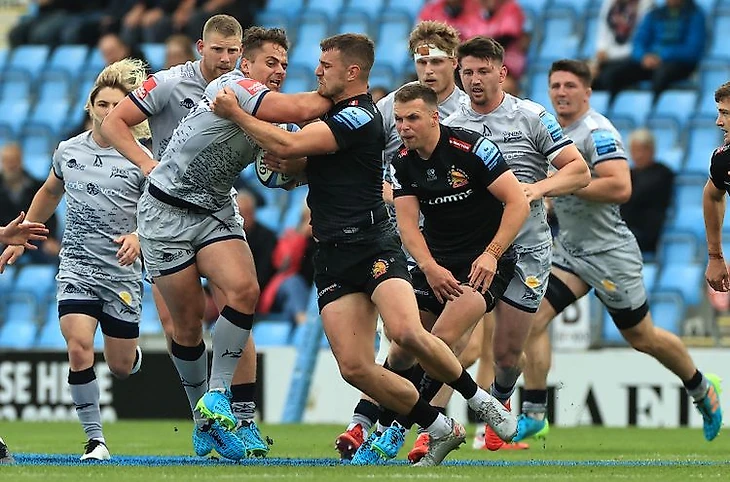 А теперь о втором полуфинале между Эксетер Чифс и Сэйл Шаркс, в котором очков было набрано чуть меньше, чем в первом полуфинале. 40-30(22-13) в матче между второй и третьей командами Премьершипа. В чью пользу я пока не напишу, но Вы, уважаемые читатели наверняка догадаетесь в чью. А я все равно напишу победителя в конце обзора.