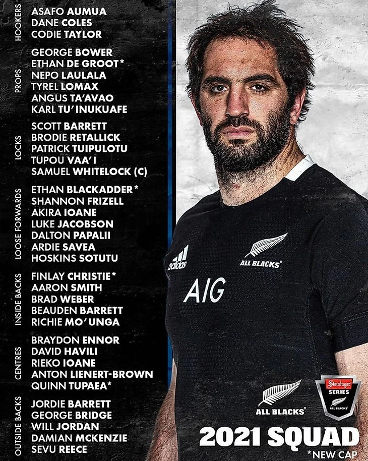Дилемма Мо'анга - Бэрретт напрямую затрагивает и заднюю линию. Тренерский штаб вызвал в итоге всего пятерых, хотя и подразумевая, что каждый из них может закрыть две-три позиции. Нельзя не пригласить Джорди Бэрретта, обладающего исключительным талантом, но все еще не доказавшим на самом высоком уровне, что он готов для роли игрока старта; нельзя проигнорировать Уилла Джордана, в перспективе суперзвездного фуллбэка; не смогли огорчить Дамиана МакКинзи, которого на все лады расхваливал новозеландский Stuff (да и не только он), хотя, как по мне, подвиги ДиМэка были весьма преувеличены. Наконец, Фостер проявил лояльность по отношению к Джорджу Бриджу и Севу Рису - опытным, но наиболее «спорным» кандидатам, учитывая их игру в Супер Регби (Бридж и вовсе вернулся уже по ходу сезона после длительного простоя). Кто-то, наверное, посокрушается по отсутствию дебютантов, коими вполне могли бы стать Салеси Райяси или, скажем, Лестер Фаинга'ануку, а то и вовсе Джона Нареки. Никто из них в целом еще не вышел на требуемый уровень стабильности, но по конкретному сезону 2021 все трое запомнились яркими перформансами. Но, опять же, состав не резиновый, а через год еще вернется Калеб Кларк, будет питать надежды на дебют Нанаи-Сетуро... Конкуренция приличная и через два года к Кубку Мира совершенно непонятно, кто окажется в топе, а кто - в ауте.