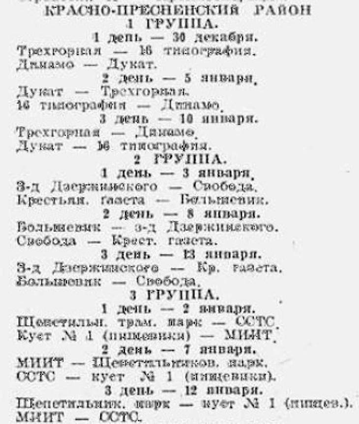 Районный календарь Краснопресненского района хоккейного сезона 1930/31 года («Физкультура и спорт» № 71-72 за 30 декабря 1930 года)