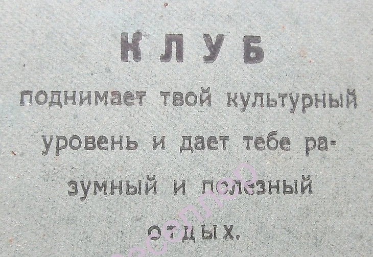 Конец 1920-х годов. Фрагмент страницы членского билета Сарапульского городского профессионального Клуба Союза пищевиков имени X годовщины Октябрьской Революции (meshok.net)
