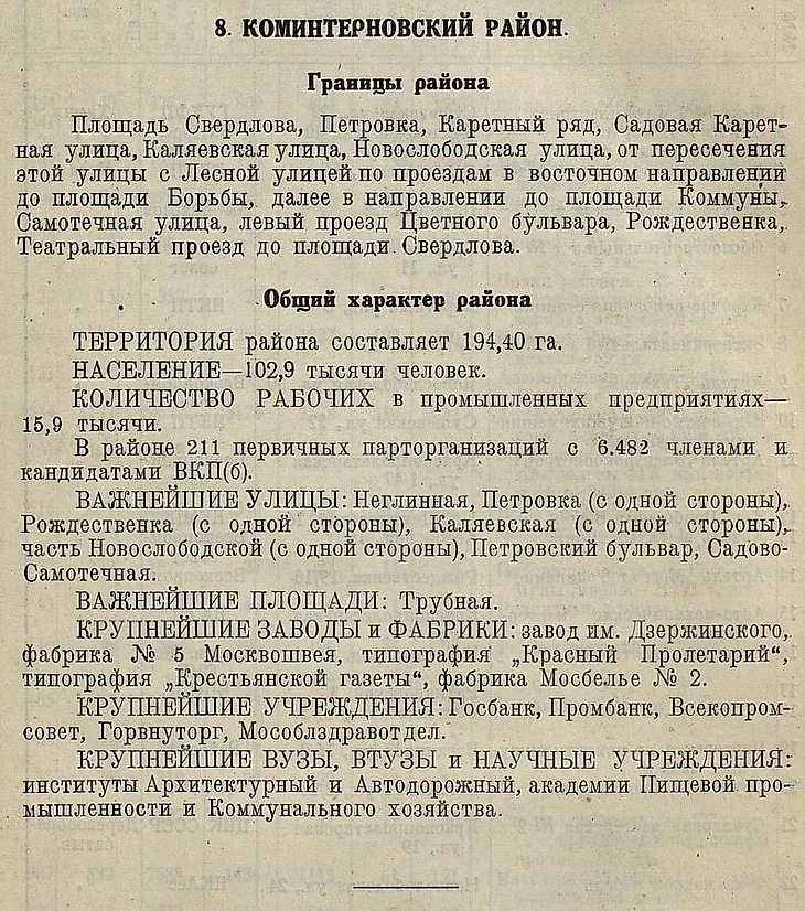 1935 год. Коминтерновский район Москвы (краткая характеристика) из издания 1936 года «Москва в новых районах»