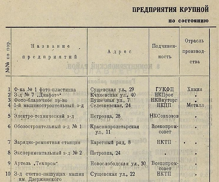 Завод счетно-пишущих машин имени Дзержинского (нижняя строчка) в издании 1936 года «Москва в новых районах»